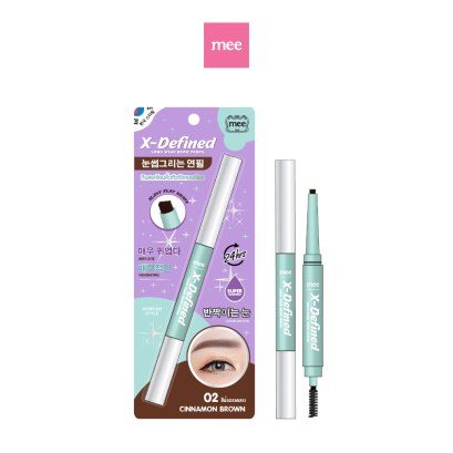 A new innovation auto eyebrow pencil with built in brush. Features a multipurpose sword-like shape: the flat edge softly and mildly fill in brows while the pointed tip boldly defines them. It can make it easier to draw and define brows. Superfine texture provides a powdery-soft, matte finish, smooth and look natural. Comes in extended brow-true shades made to match virtually Asian hair tones. Waterproof, sweat-resistant and long-lasting for 24 hours. To create the brows of this wonderfulday with Mee X-Defined Long-wear Brow Pencil.