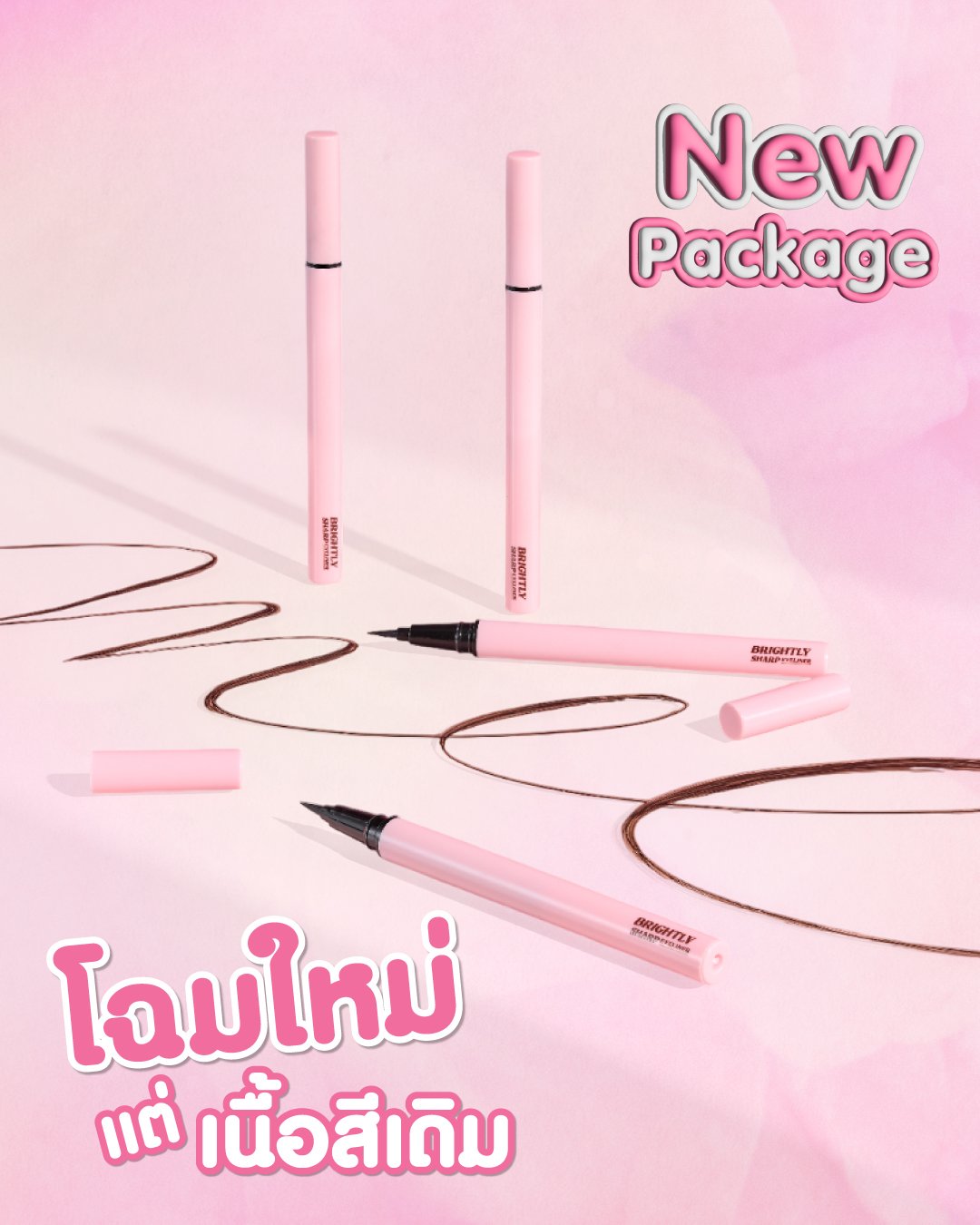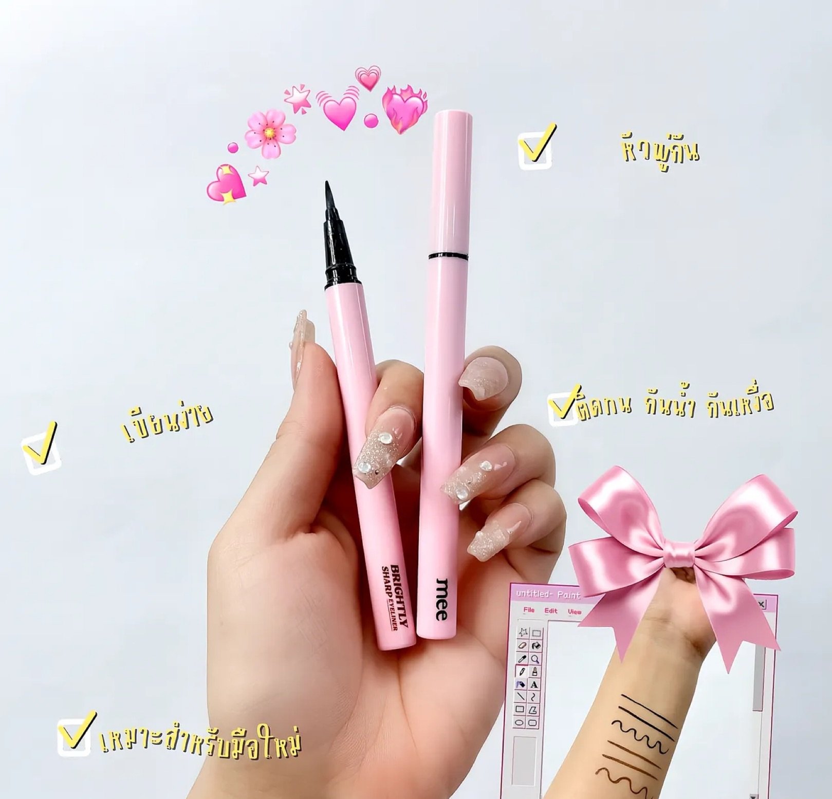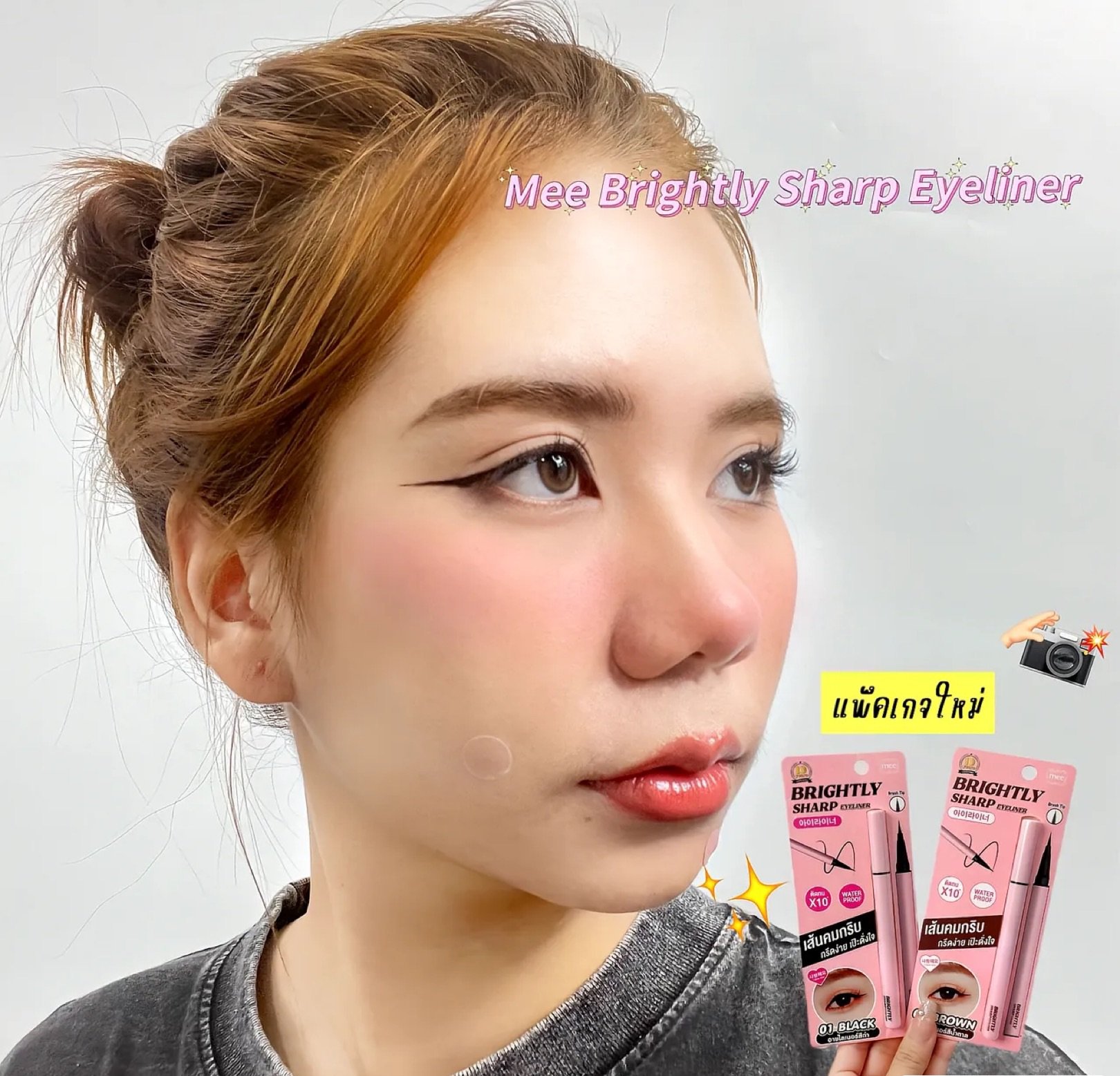 Recommend the legendary eyeliner, the number one favorite, Mee Brightly Sharp Eyeliner. Let me tell you that people with oily eyelids must love this model. Eyeliner with a brush tip, film formula, which I tell you is waterproof, sweatproof, long-lasting, easy to draw, sharp lines, more dimensional, beautiful and stylish in every look. For anyone who is looking for a good eyeliner, I recommend this one.