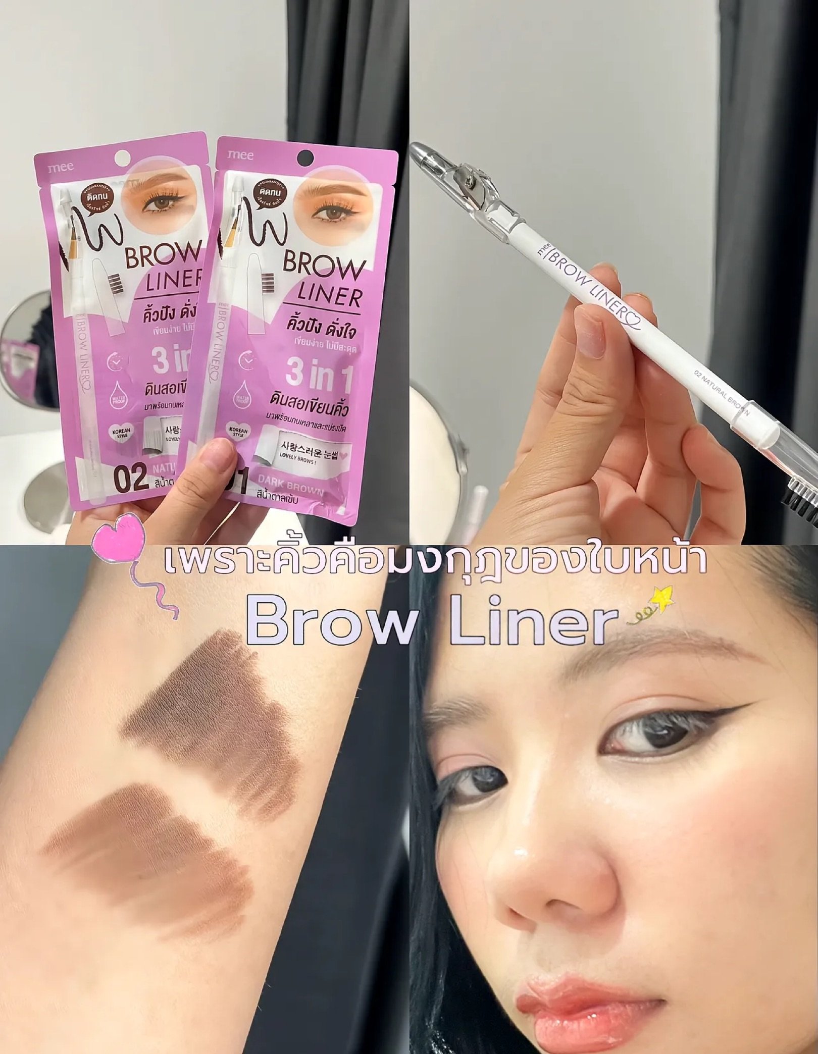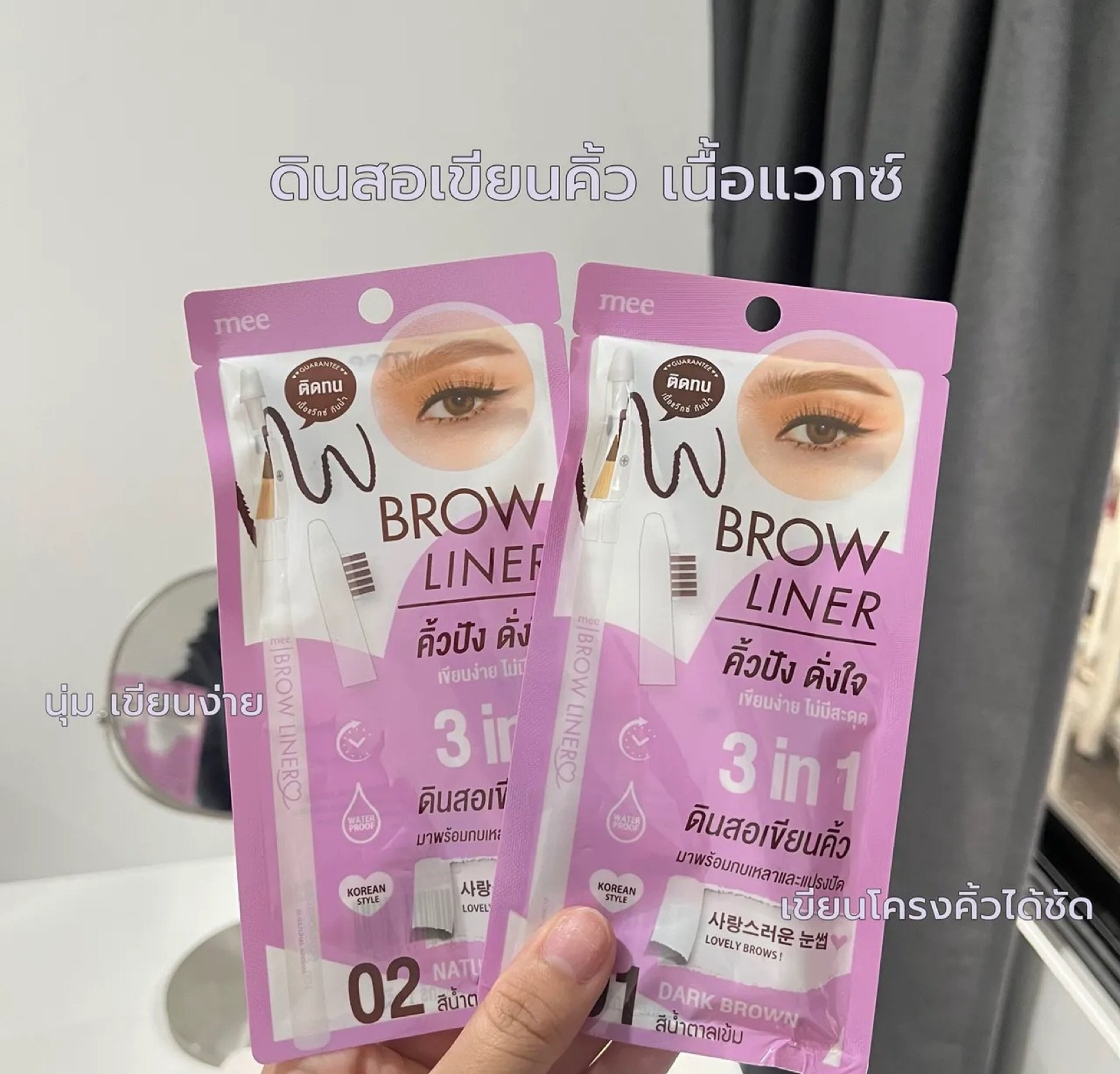 Recommended pencil MEE BROWFIT WOODEN PENCIL & SHARPENER The pencil is soft, easy to draw, can draw clear eyebrow shape. Comes with a sharpener and eyebrow brush. Beautiful in one pencil, waterproof, sweatproof, long-lasting for 24 hours. Available in 2 colors: