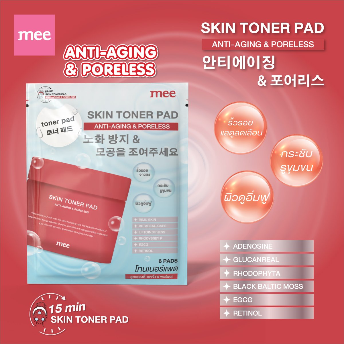 MEE SKIN TONER PAD ANTI-AGING & PORELESS - EXP11/2028